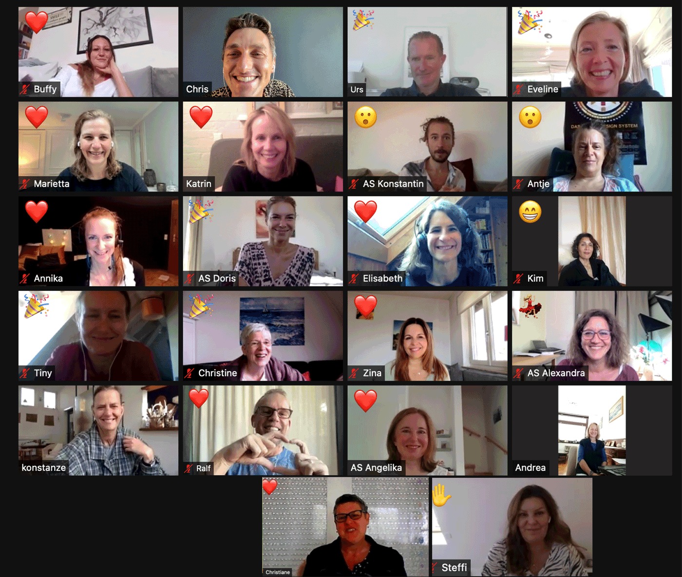Im ersten Teil dieser Veranstaltung machen wir uns mit der Konferenztechnik vertraut. Du lernst die verschiedenen Ansichten kennen, die Stummschaltung und die Möglichkeiten, sich aktiv einzubringen. Sobald das für alle gut funktioniert, starten wir mit der ersten Übung und erleben, wie schnell wir mithilfe der Technik Zweiergruppen bilden können.